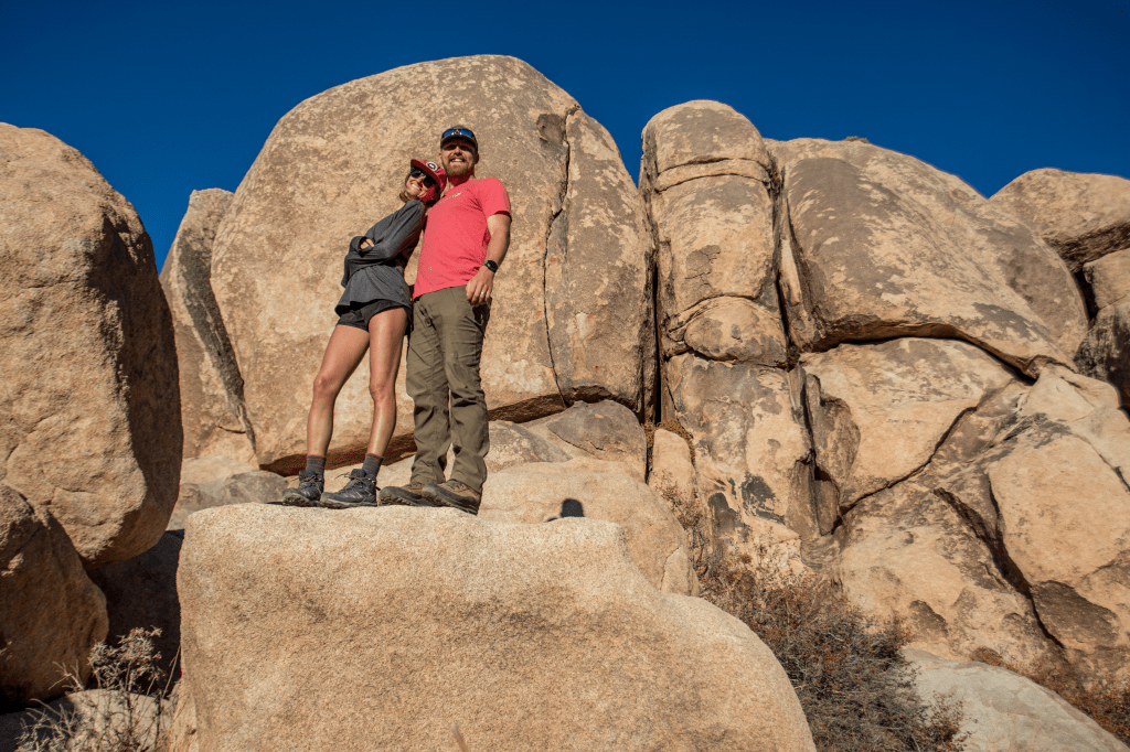 We slept well, ate cereal for breakfast and crushed a couple turkey and cheese sandwiches in the bed of the pickup, before venturing out into the desert. We met a friendly, buff dude named Mark in the parking lot who just finished up his second hike of the day. He spoke with a thick Irish accent and told us he was in Joshua Tree because he had paid time off of work. He drove seven hours from another part of California to experience the beauty of the bizarre trees and giant rocks. He told us we looked like an “Instagram travel couple”, so we gave him our handle and a Travel the Fernweh sticker that I had kept in my backpack for moments like those. We wished him well and headed past the “Lost Horse Mine Loop Trail” sign, beginning the hike backwards, in an attempt to avoid the other hikers as best as we could.