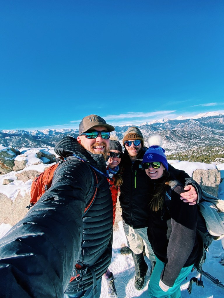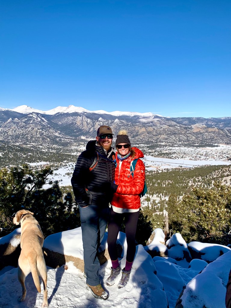 - Hiking through the snow with Luna and Berk for the Rocky Mountain 14’er views