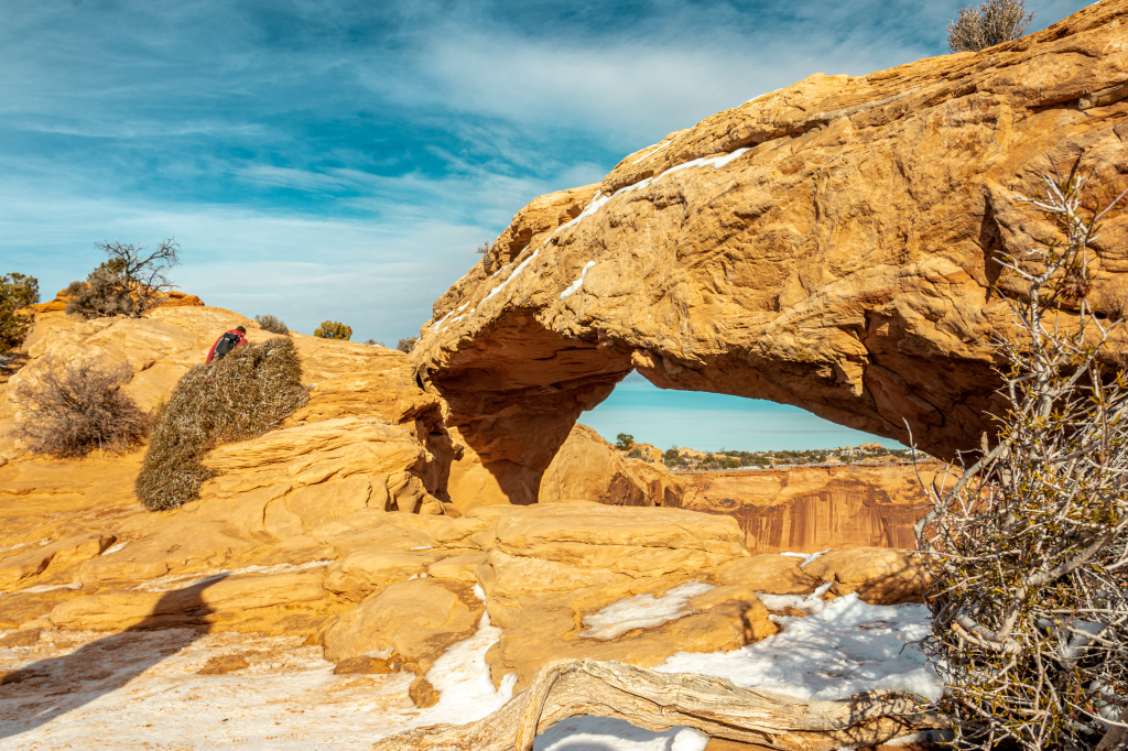 - Mesa Arch, this is the one and only arch in Canyonlands and is best photographed at sunrise. It’s tempting to stand on the arch, but it’s not allowed. A nice spot to have lunch.