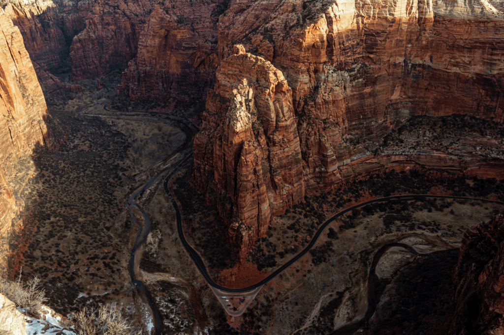 On November 6th 2020, Mike and I were about to reach the summit of Sunset Peak in Heber Valley, Utah when I started having a panic attack to the point where I couldn’t walk, let alone stand. Flash forward to January 10th, the day we’d attempt Angel’s Landing in Zion National Park. One of the most dangerous hikes in the US. “Angels Landing received its name in 1916 when a group passing through the canyon commented that only an angel could land on top of it. The trail to the summit was constructed in 1926 and includes a remarkable series of 21 short switchbacks called ”Walters Wiggles”.
