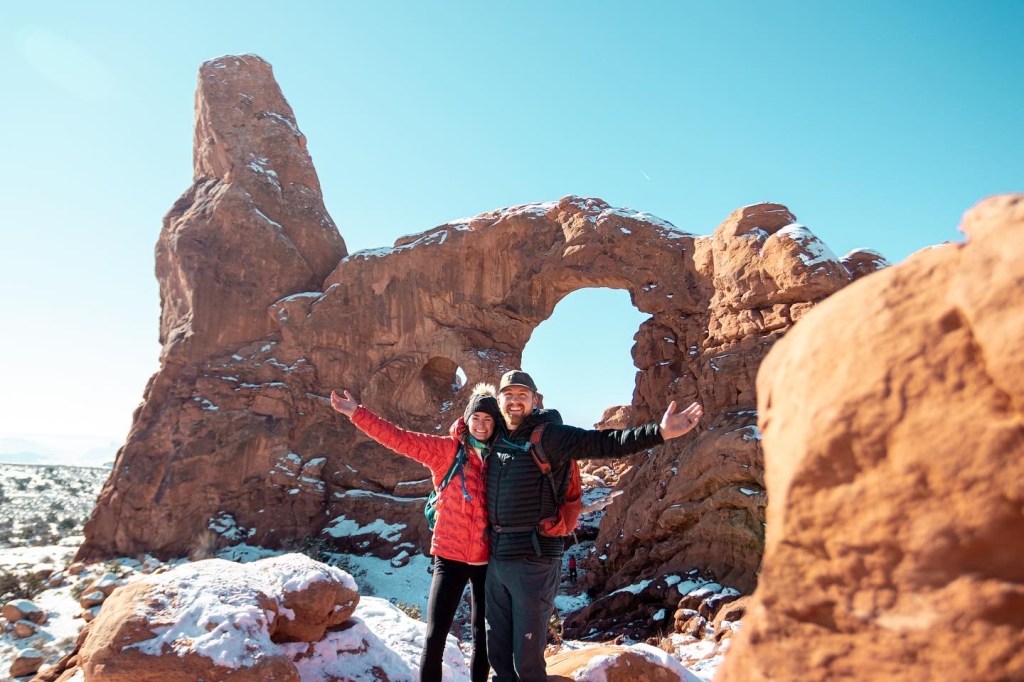 Arches, NP was breathtaking, despite the fact that we were there on one of the busiest days of the off-season. It was New Year’s Day, so parents were off of work and children were everywhere. With that being said, all National Parks enforce COVID restrictions and require masks, so we did feel safe, despite the crowds. We haven’t run into full parking areas and crowds at all because we’re traveling during the so-called “Off-season.” That is certainly a perk of traveling in late Fall/Winter. So if you do visit Arches in the off-season, plan to do so on a weekday, if you have the opportunity.