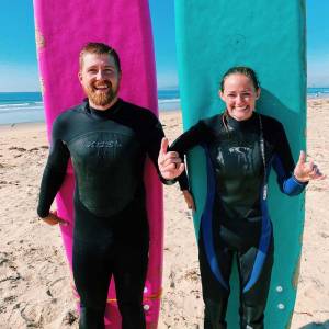 - We took surfing lessons from a cool guy named Bob in the Pacific ocean.